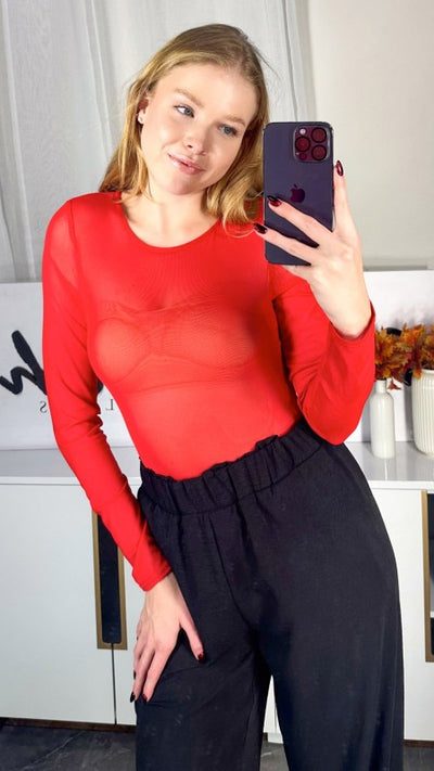 *Preorder* Sheer Long Sleeve Knit Bodysuit
