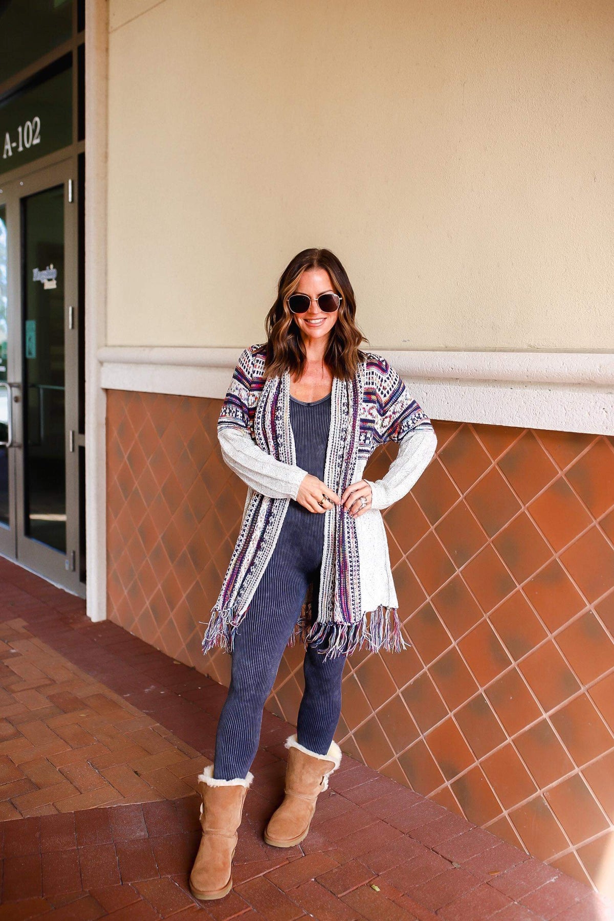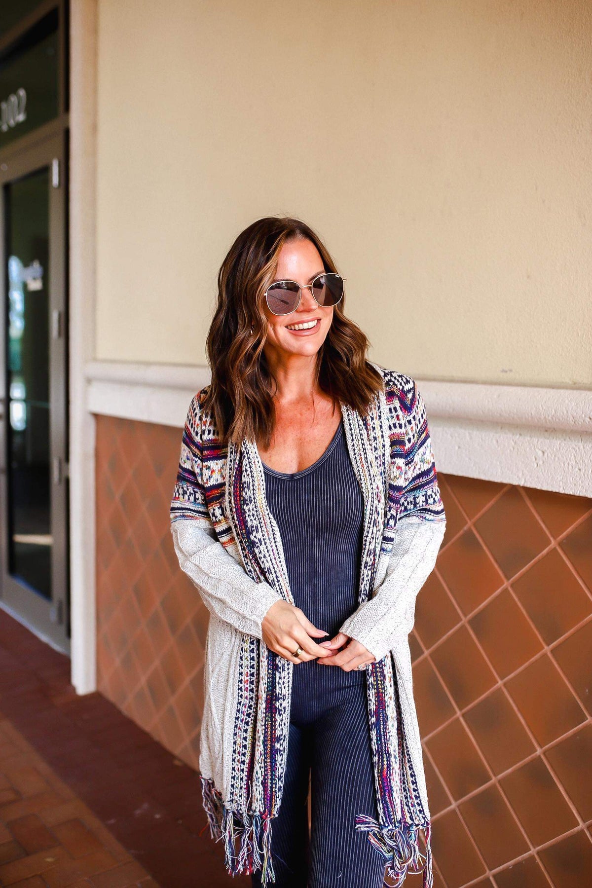 Stay warm and stylish with our Oh So Lucky Fringe Cardigan! Made from a cozy rainbow sweater knit, this cardigan features a shawl collar and fringe trim for added flair. Perfect for adding a pop of color to any outfit, you'll feel lucky to have this cardigan in your wardrobe.