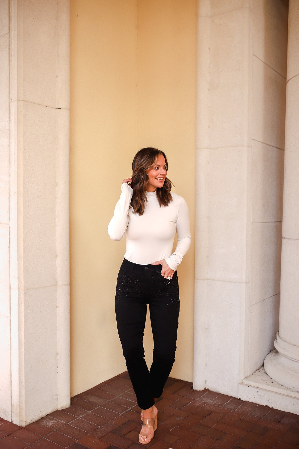 Our Simple Situation Mock Neck Bodysuit is the perfect combination of style and comfort. You'll love the cozy butter-soft fabric, mock neckline, and long sleeves. The thong style bottom ensures a seamless fit and look so you'll look great and feel fabulous in this unique and comfy bodysuit.