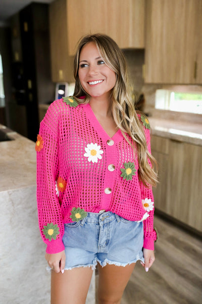 BiBi Flower Patches Open Knit Sweater Cardigan