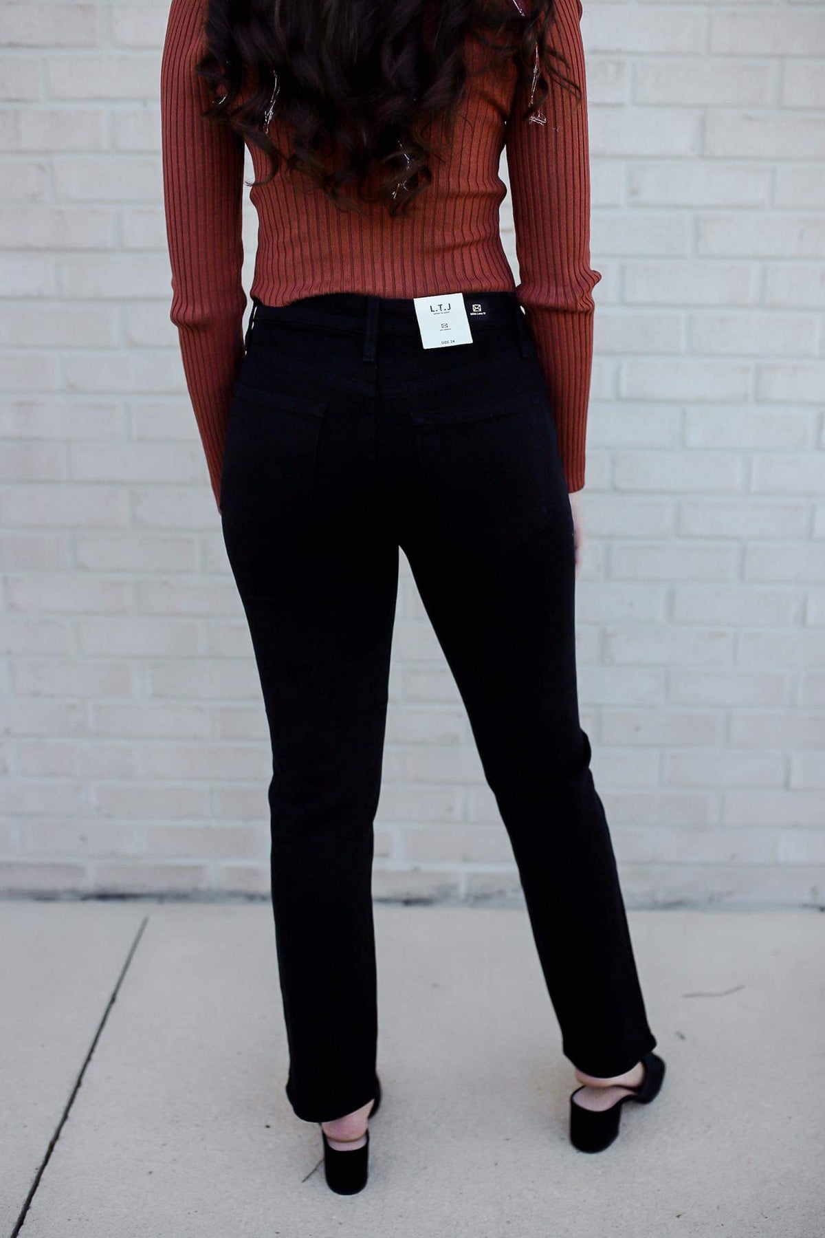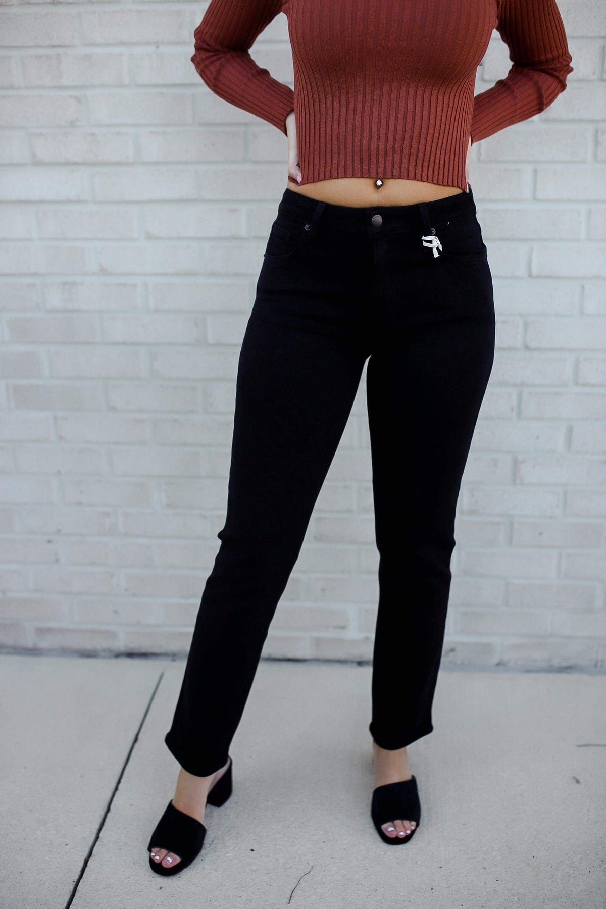 Feel cool and confident in our Siena High Rise Black Denim! These slim straight jeans are crafted from a super soft cotton blend and feature a high-rise waist, giving you just the right balance of comfort and style. Plus, the classic black hue can easily be dressed up or down. Rock on!