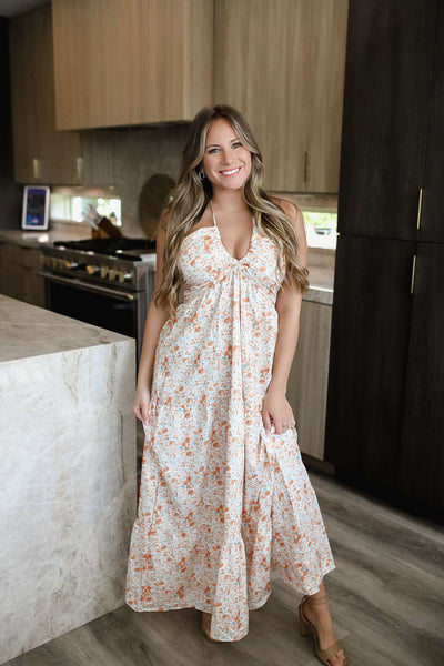Tropical Print Backless Maxi Sleeveless Dress WH