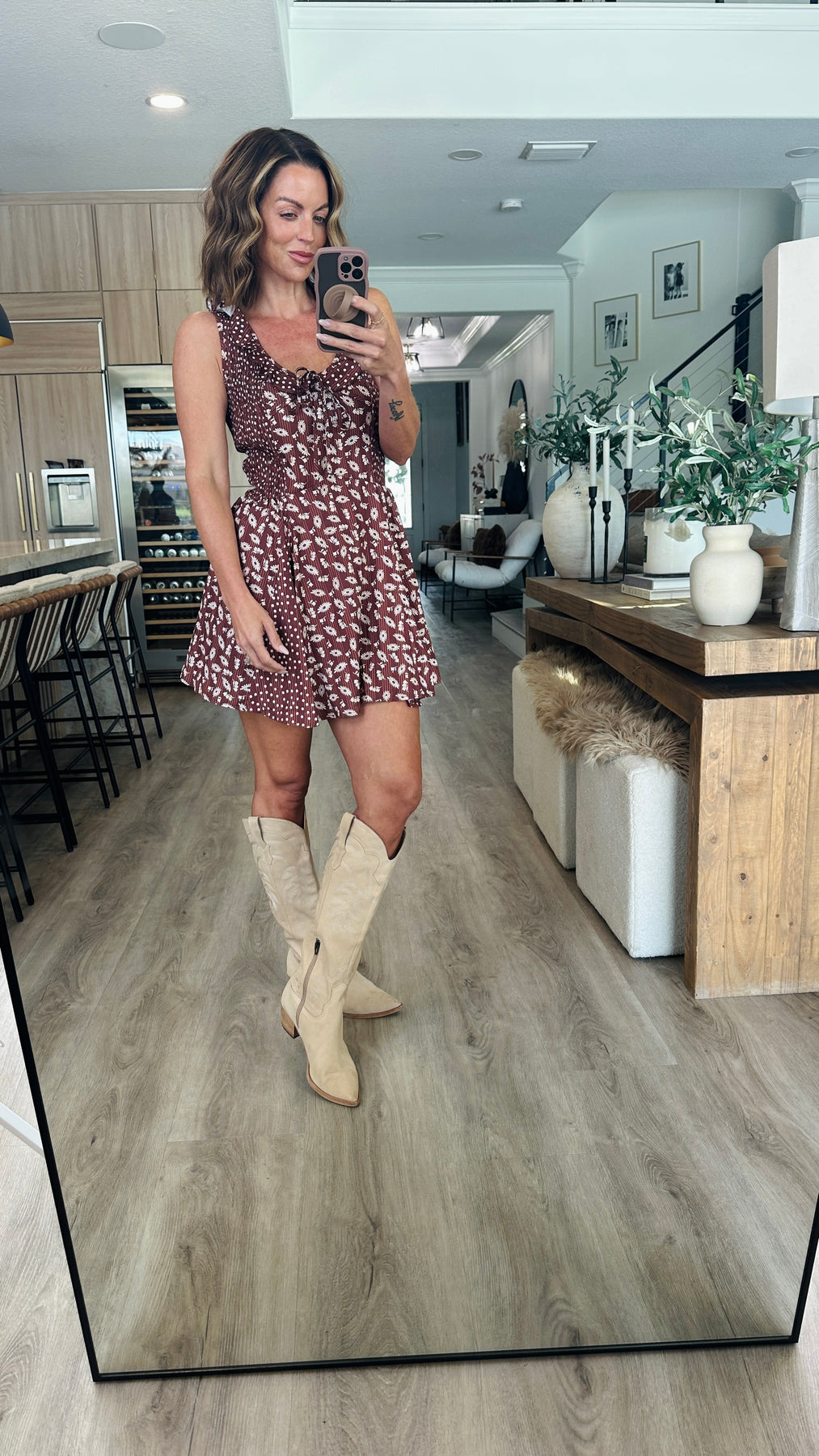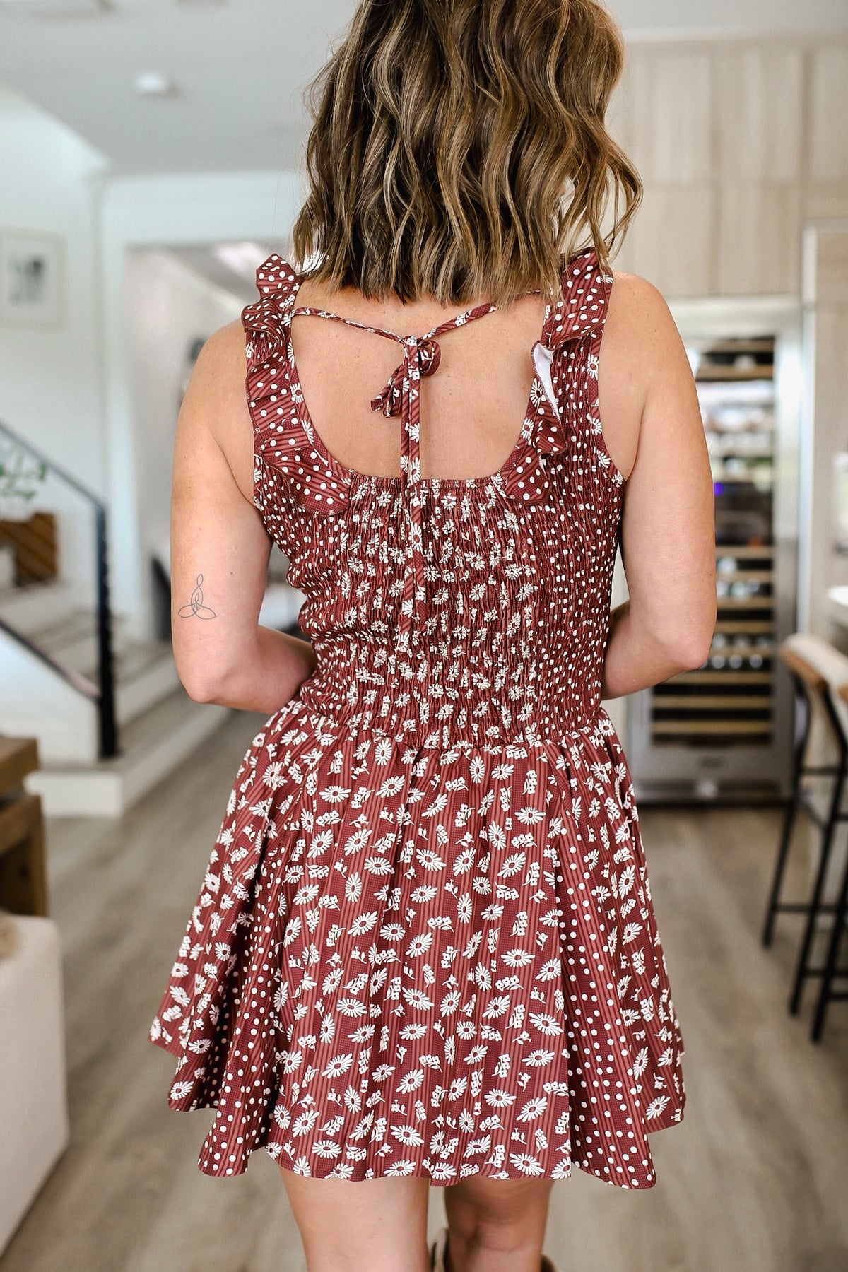 Sweet, flirty, and ready for sunshine — this mini dress is giving major heart eyes. Featuring a soft scoop neckline and playful ruffle hem, it's the perfect mix of feminine and fun. The floral print adds that romantic touch, making it a go-to for brunch dates, garden parties, or any moment that calls for a little extra pretty. Just add your favorite sandals and you're set! The model is in the medium.
