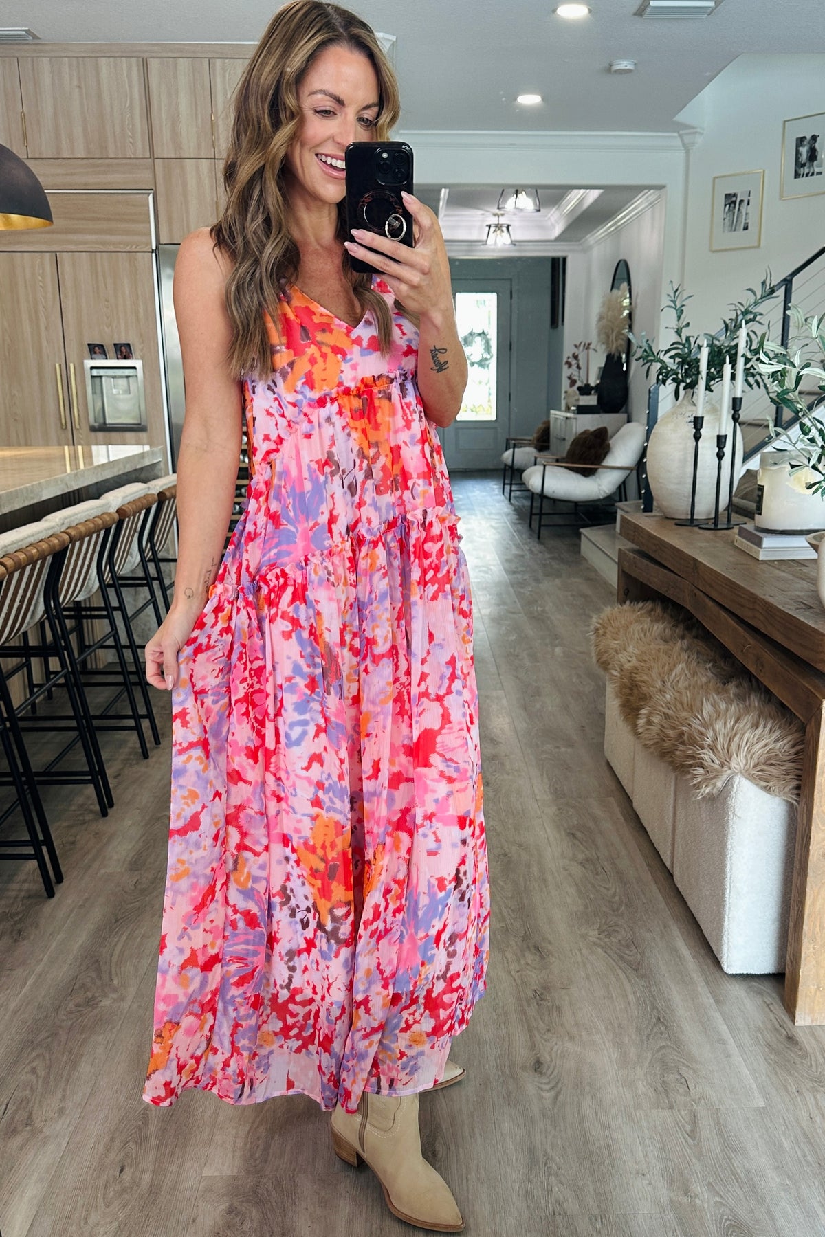 Turn heads in our Printed V-Neck Sleeveless Dress—your new go-to for effortless style. Featuring a flattering v-neckline and a sleeveless cut that keeps things cool and comfortable, this dress is perfect for warm days and sunny adventures. The bold print adds a fun pop of personality, while the easy, flowy fit makes it ideal for everything from brunch dates to weekend strolls. Just add your favorite sandals and you're ready to shine! The model is in the small "strawberry".