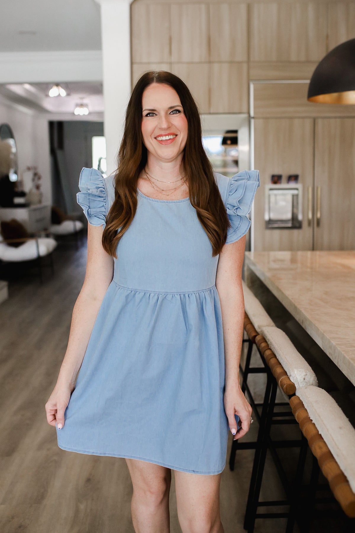 Full Size Ruffled Round Neck Cap Sleeve Denim Dress
