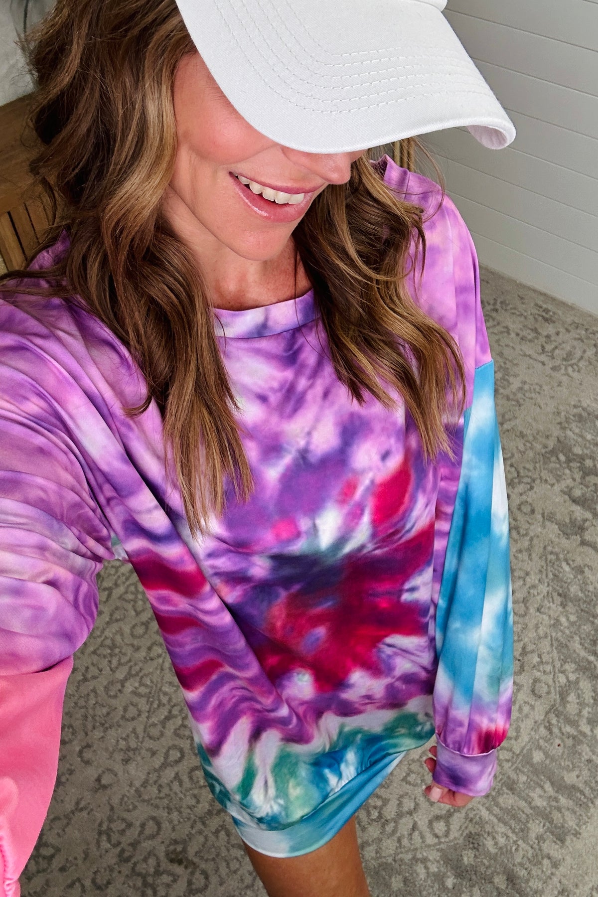 Get ready to turn heads with our Full Size Tie-Dye Round Neck Long Sleeve Dress. This fun dress features a unique tie-dye pattern and a round neck design with long sleeves. Stand out from the crowd and make a statement with this playful and stylish dress. The model is in the purple medium.