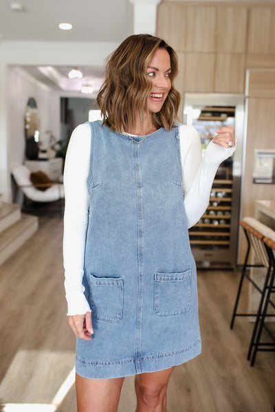 Round Neck Denim Overall Dress