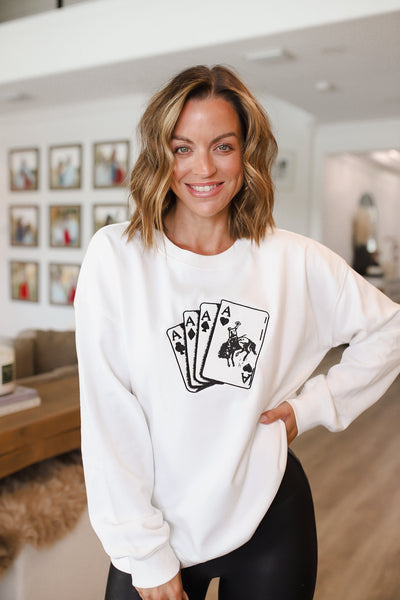 Ace Card Cowboy Graphic Long Sleeve Sweatshirt