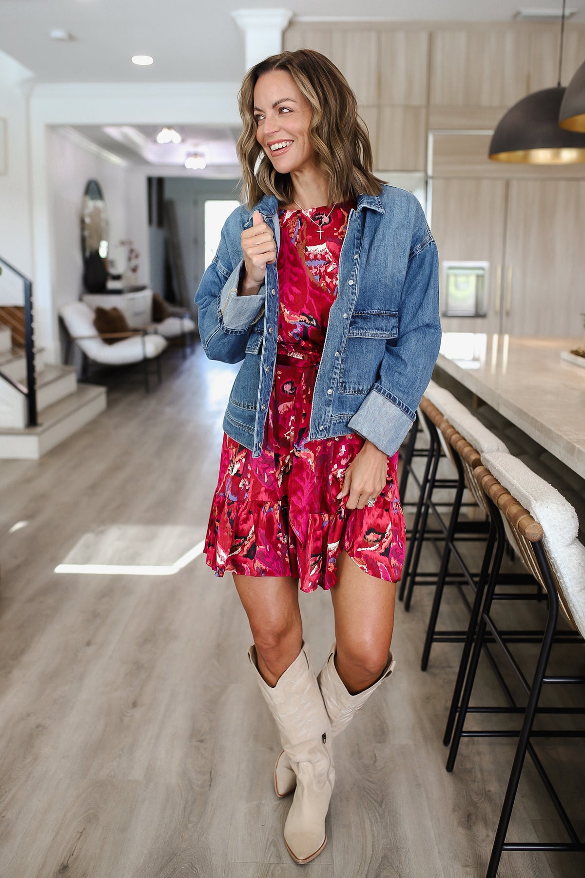 RISEN Oversized Cargo Pocket Denim Jacket with Cuffed Sleeves