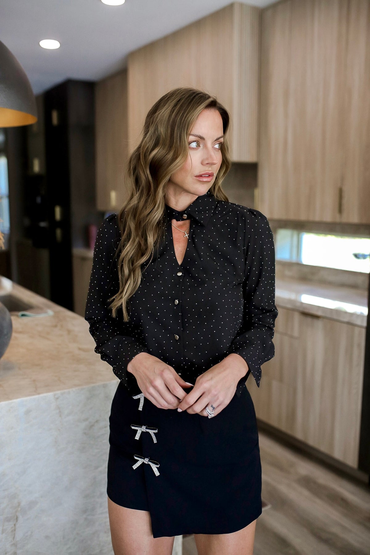 Rhinestone Bow Wrap High Waist Mini Skirt WH