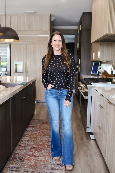 RISEN High Rise Wide Leg Bow Embroidered Jeans