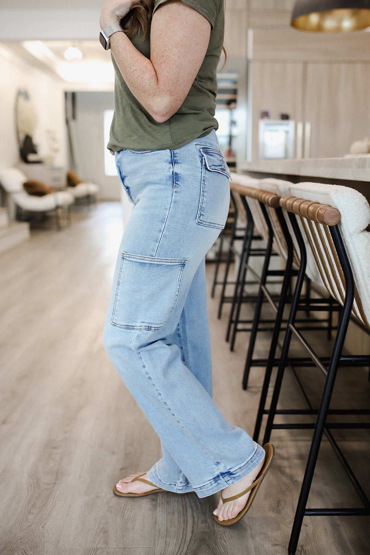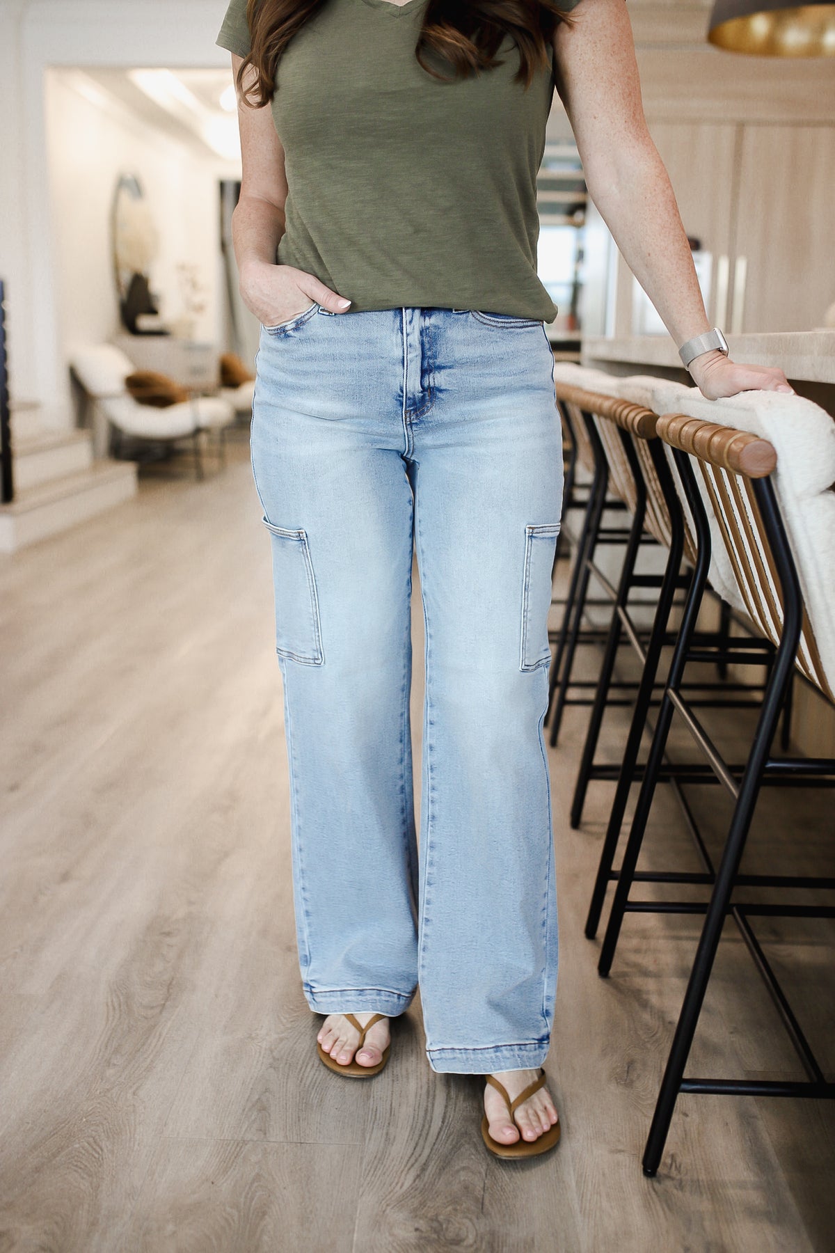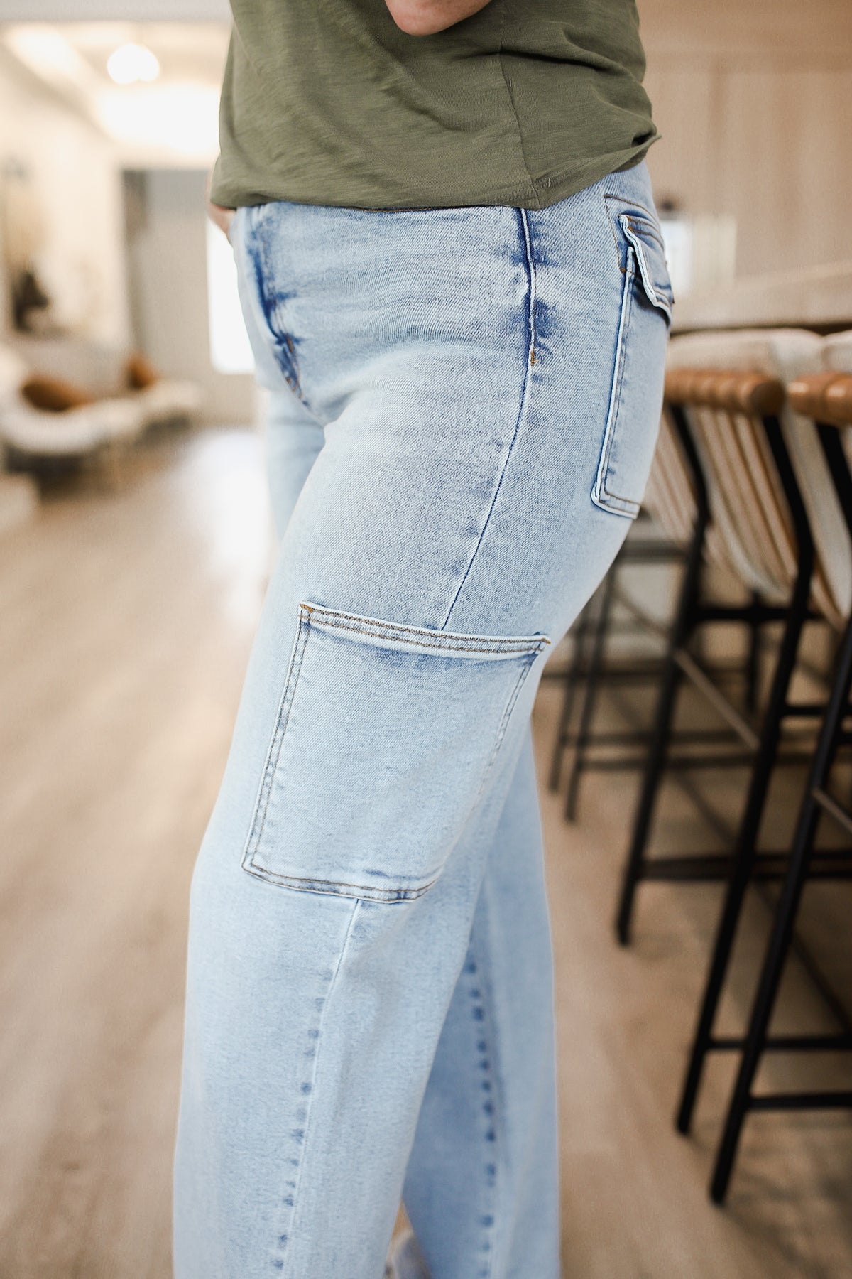 These high waist straight cargo jeans feature a trendy and practical design. With multiple pockets, they offer ample storage space for your essentials. The straight leg silhouette offers a flattering and versatile look. The high waist design provides a comfortable and secure fit. Perfect for everyday wear or for adding a touch of utility style to your outfit. Pair them with a simple top and sneakers for a stylish and functional ensemble. The model is a 4, wearing the 3. You can size down one from your even size.