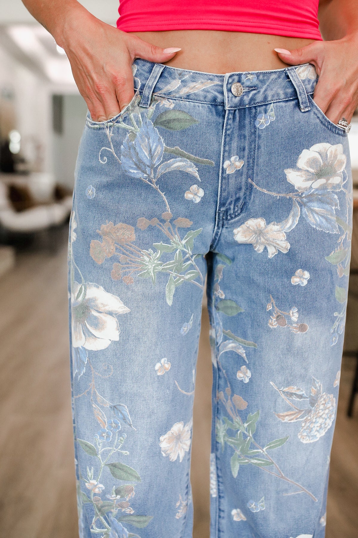 Meet your new favorite statement denim — our Floral Printed Wide Leg Jeans! Designed to turn heads, these jeans feature a vintage-inspired floral print that adds a playful, feminine touch to your everyday look. The high-rise waist flatters your shape while the wide leg offers a breezy, elongating silhouette that moves with you.