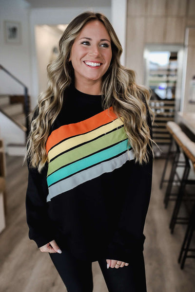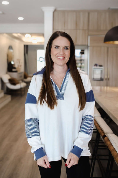 Striped Johnny Collar Long Sleeve Sweatshirt