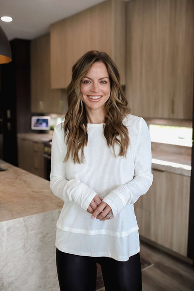 Double Take Corded Rib Thumbhole Cuff Round Neck T-Shirt
