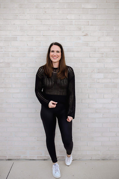 HYFVE Openwork Ribbed Long Sleeve Knit Top