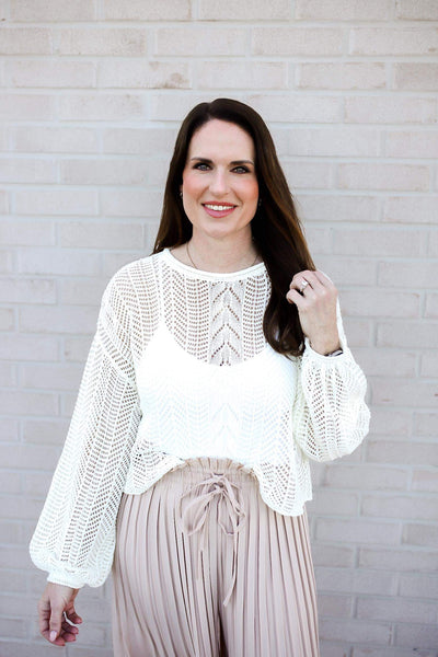 POL Openwork Balloon Sleeve Knit Cover Up