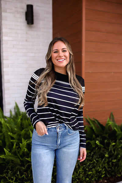 Striped V-Neck Long Sleeve Top