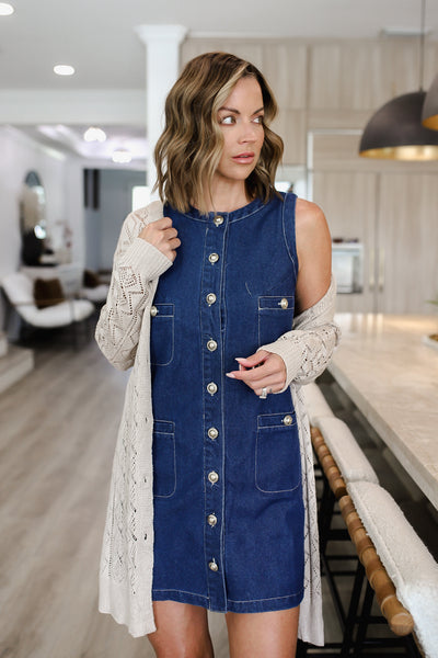 Openwork Button Down Long Sleeve Cardigan