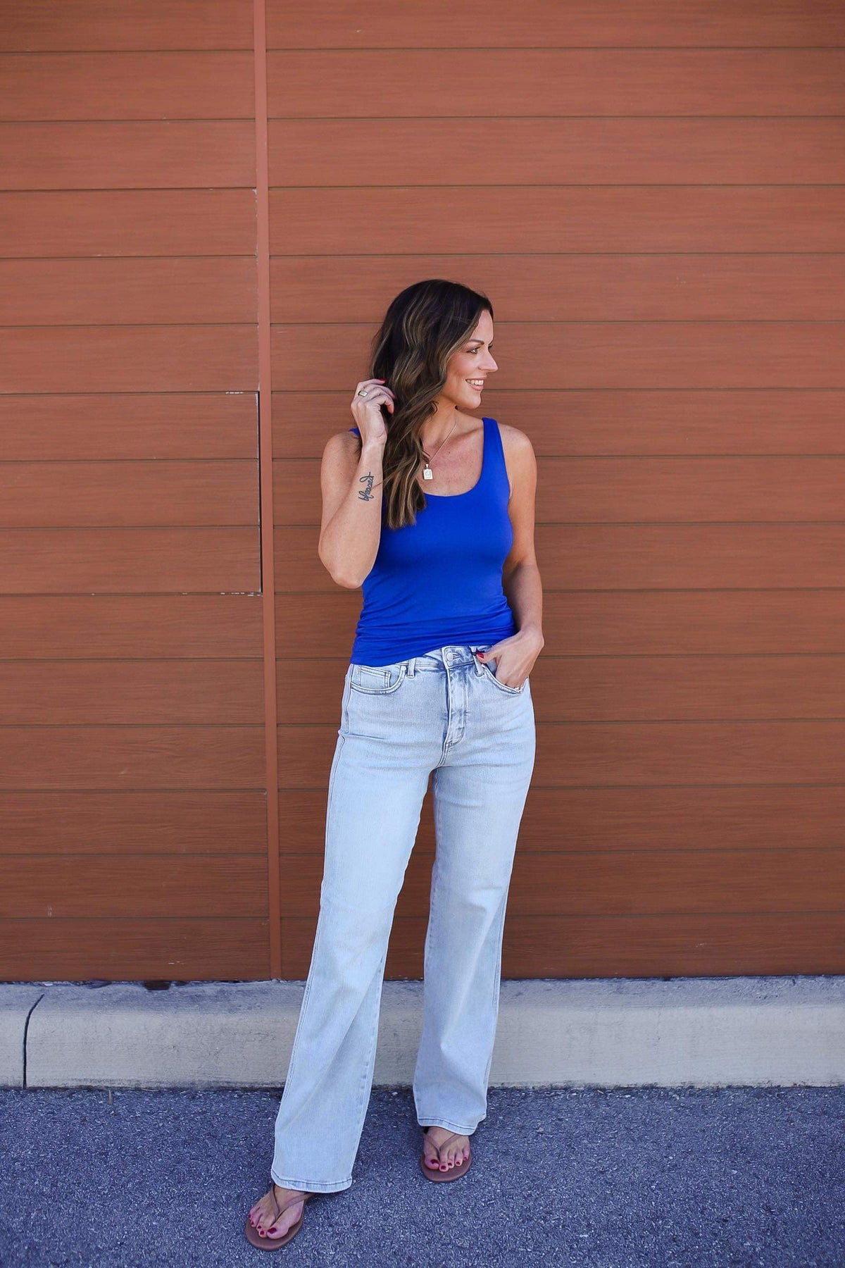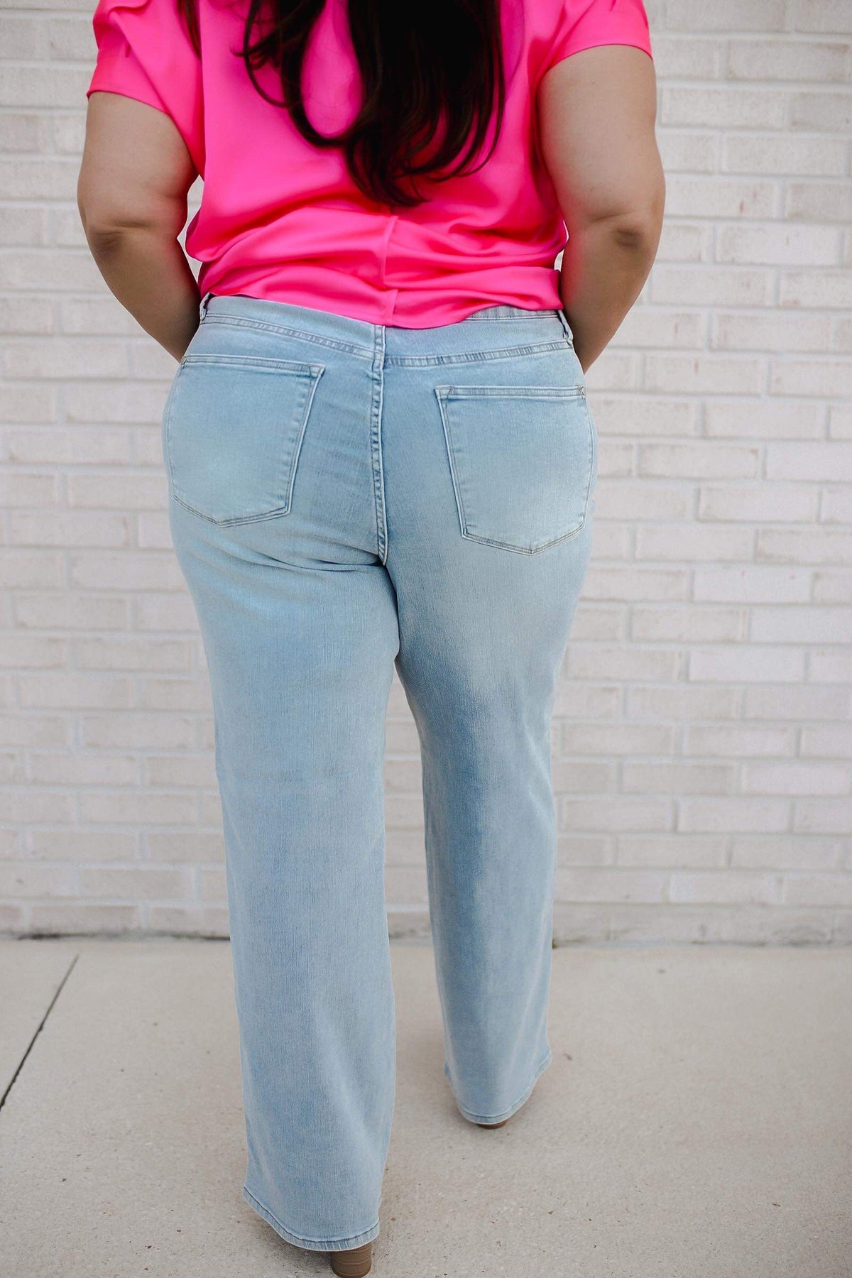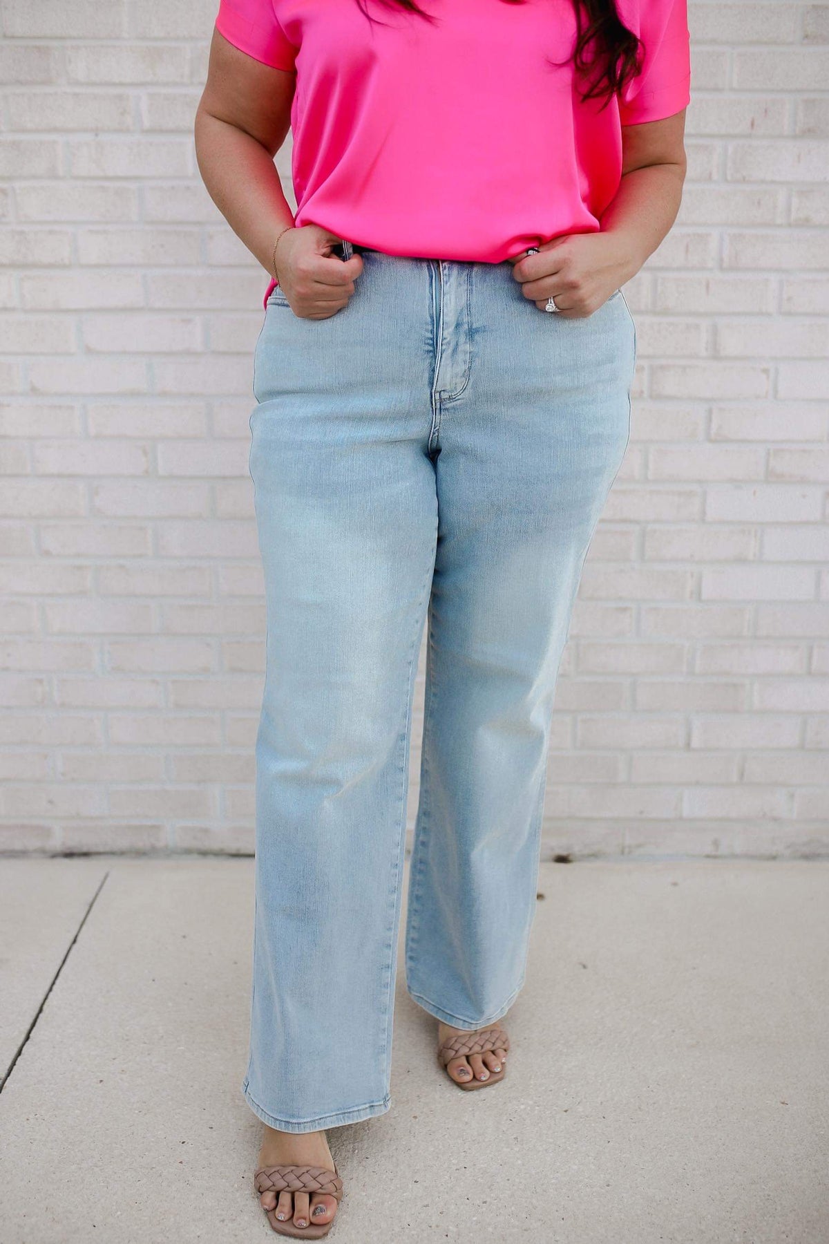 Elevate your denim game with Brooke High Rise Jeans from Judy Blue. These vintage wash jeans feature tummy control technology for a flattering fit, while the non-distressed straight leg adds a touch of sophistication. Rock your curves and conquer the day in these high rise jeans. The model is a 4, wearing the 3. You can size down one from your even size. Pictures with Lauren tank.