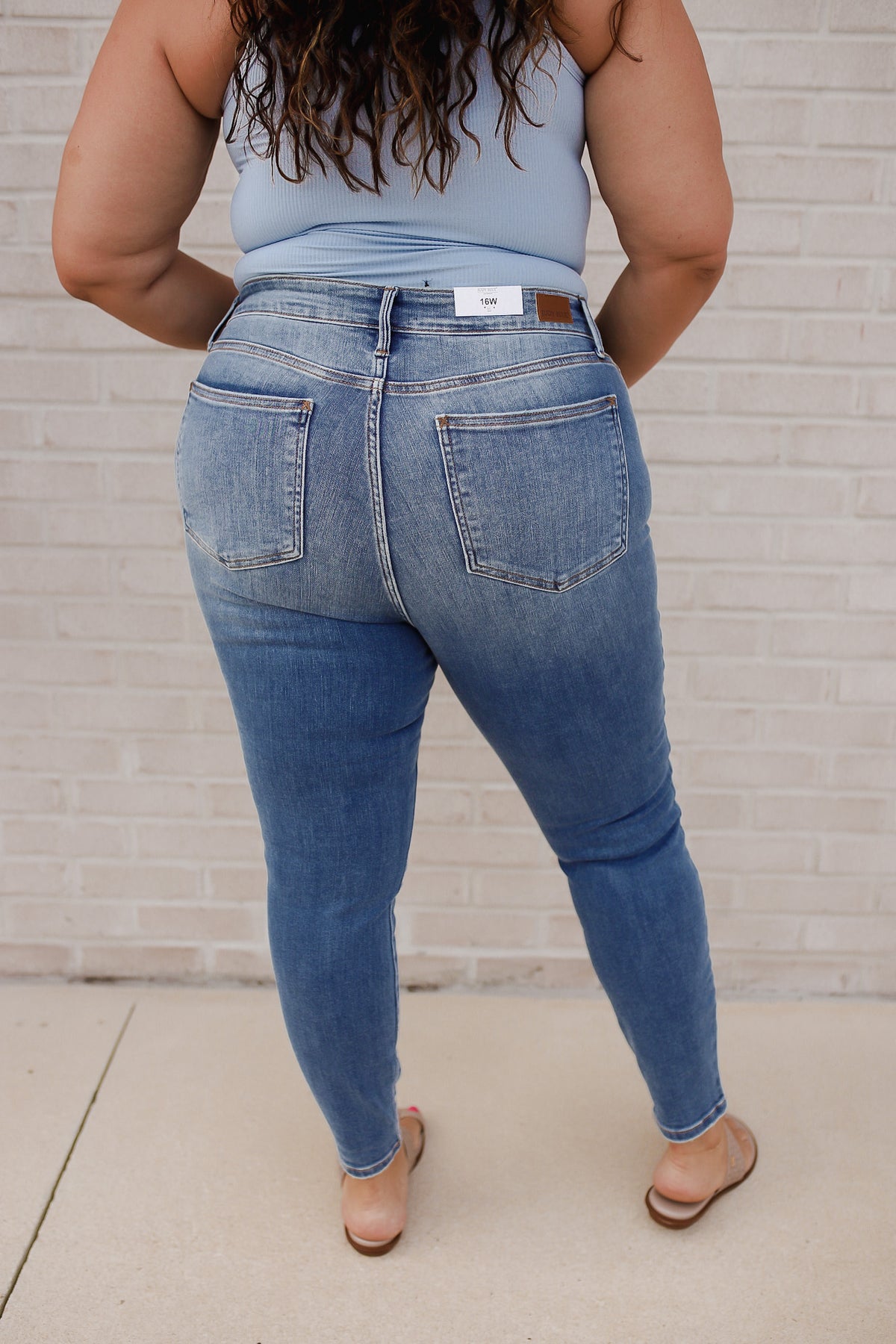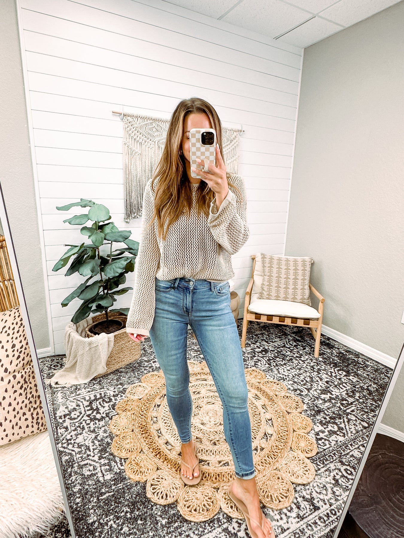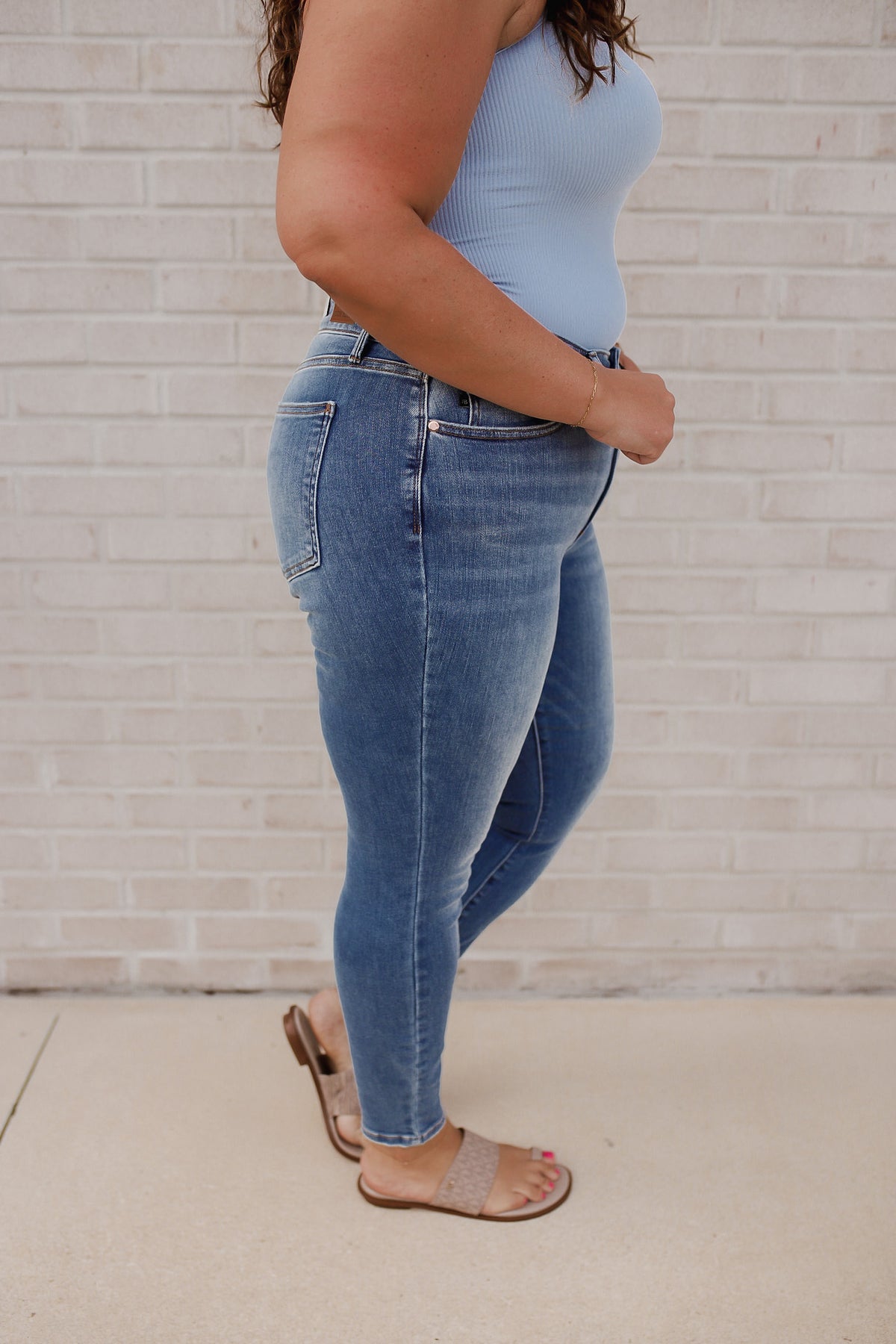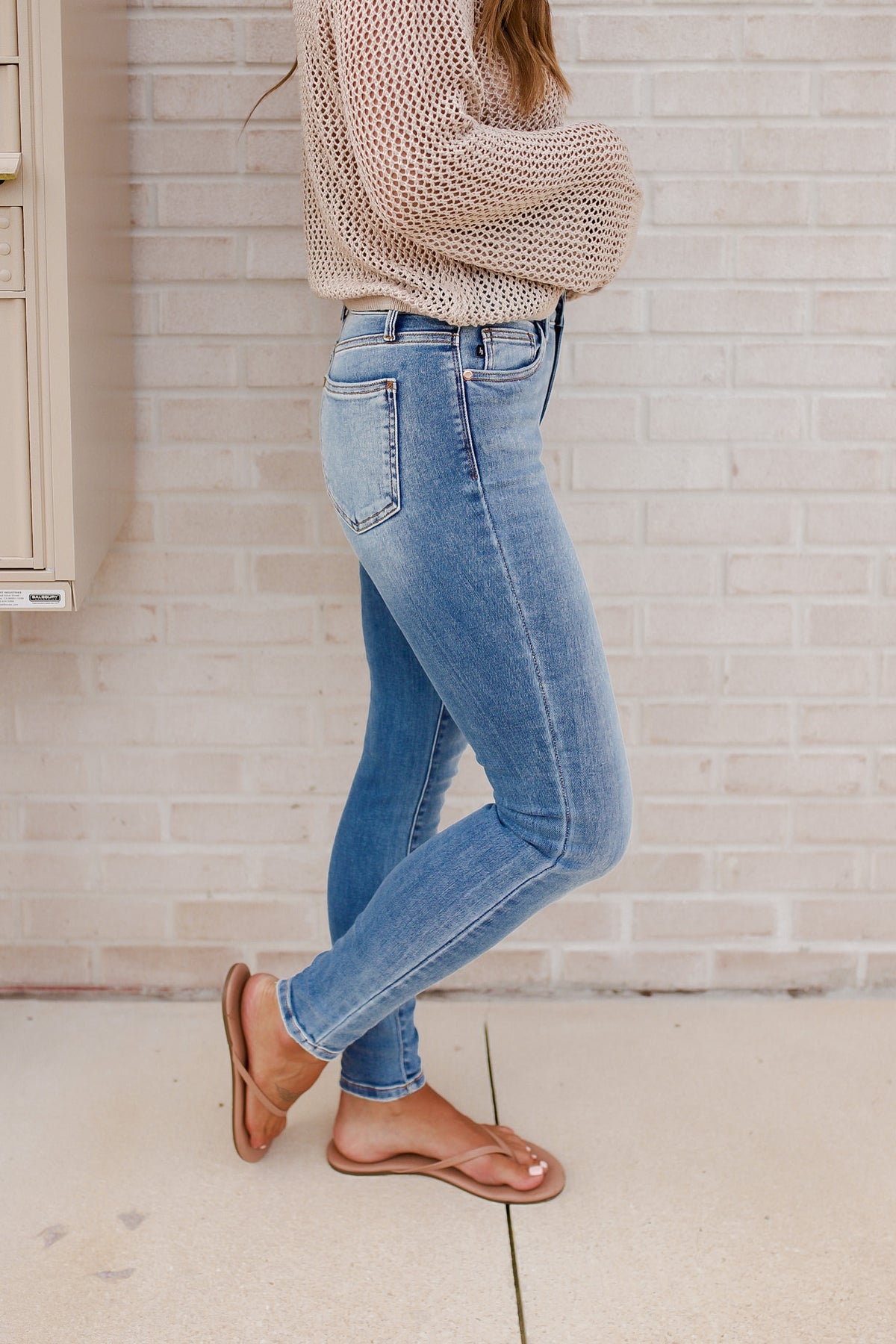 The Catherine jeans feature a high-waisted, skinny fit with a non-distressed finish. Perfect for a stylish but classic look, these jeans will pair wonderfully with your favorite top or blouse. Enjoy superior comfort and stretch performance with the timeless look of mid-rise jeans. Carina is a 6, wearing the 5. You can size down one from your even size. *Paired with Open Edit Long Sleeve Top*