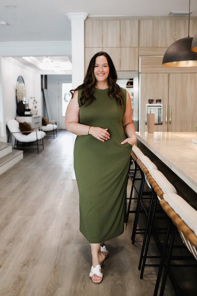 Full Size Slit Round Neck Sleeveless Maxi Tank Dress Plus Size