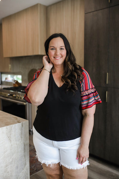 Plus Size V-Neck Flounce Sleeve Top