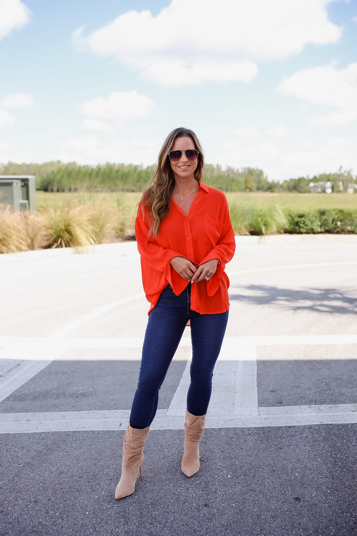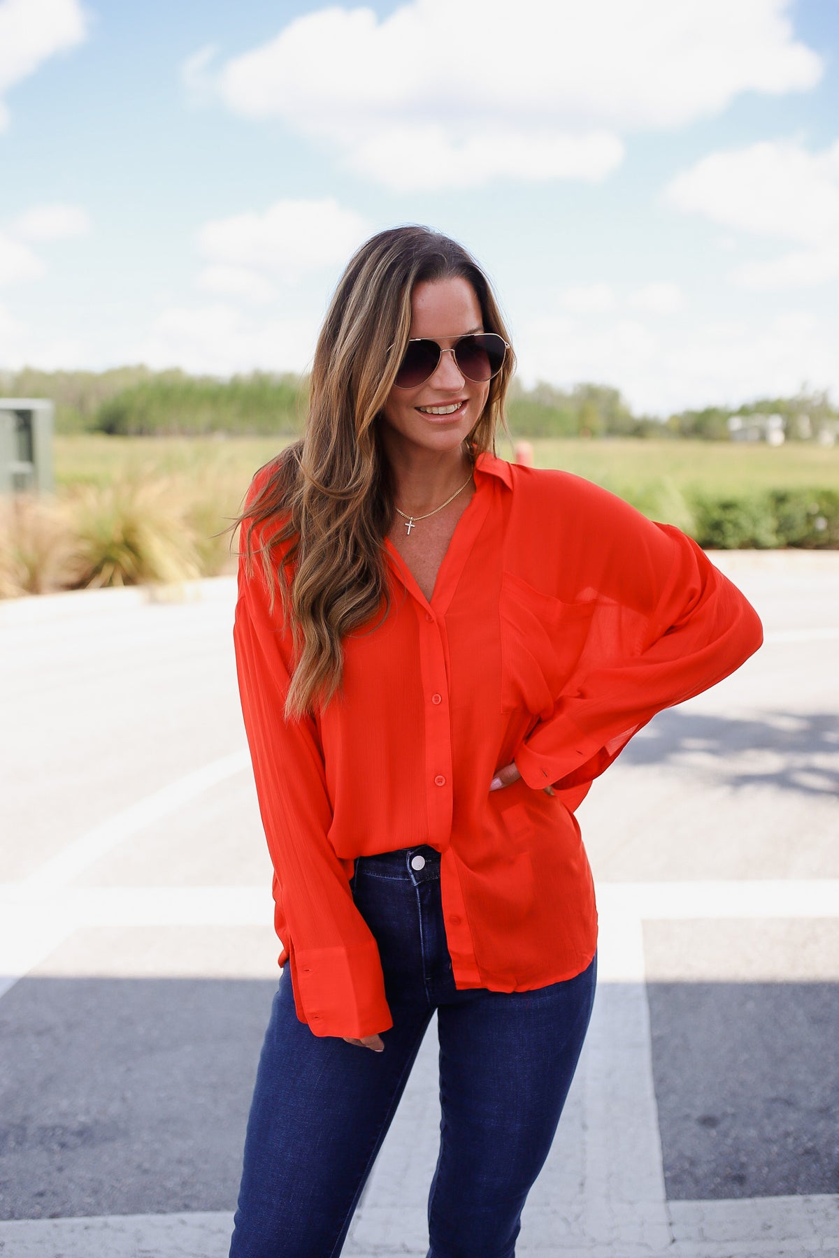 Perfect for a laid-back but still put-together look, the Not So Subtle Button Down Top is lightweight, textured, and oversized, so you can feel comfortable while still looking fantastic. With a collared, button down design, you can easily dress up your casualwear - just pair with the Not So Subtle Wide Leg Pants for a complete outfit! Looking good has never felt so effortless! The model is in the medium. *Pictured with Addison Crinkle Ankle Skinny*