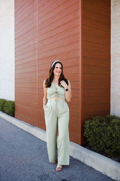 Caught Up in You Sleeveless Belt Midi Dress- Green