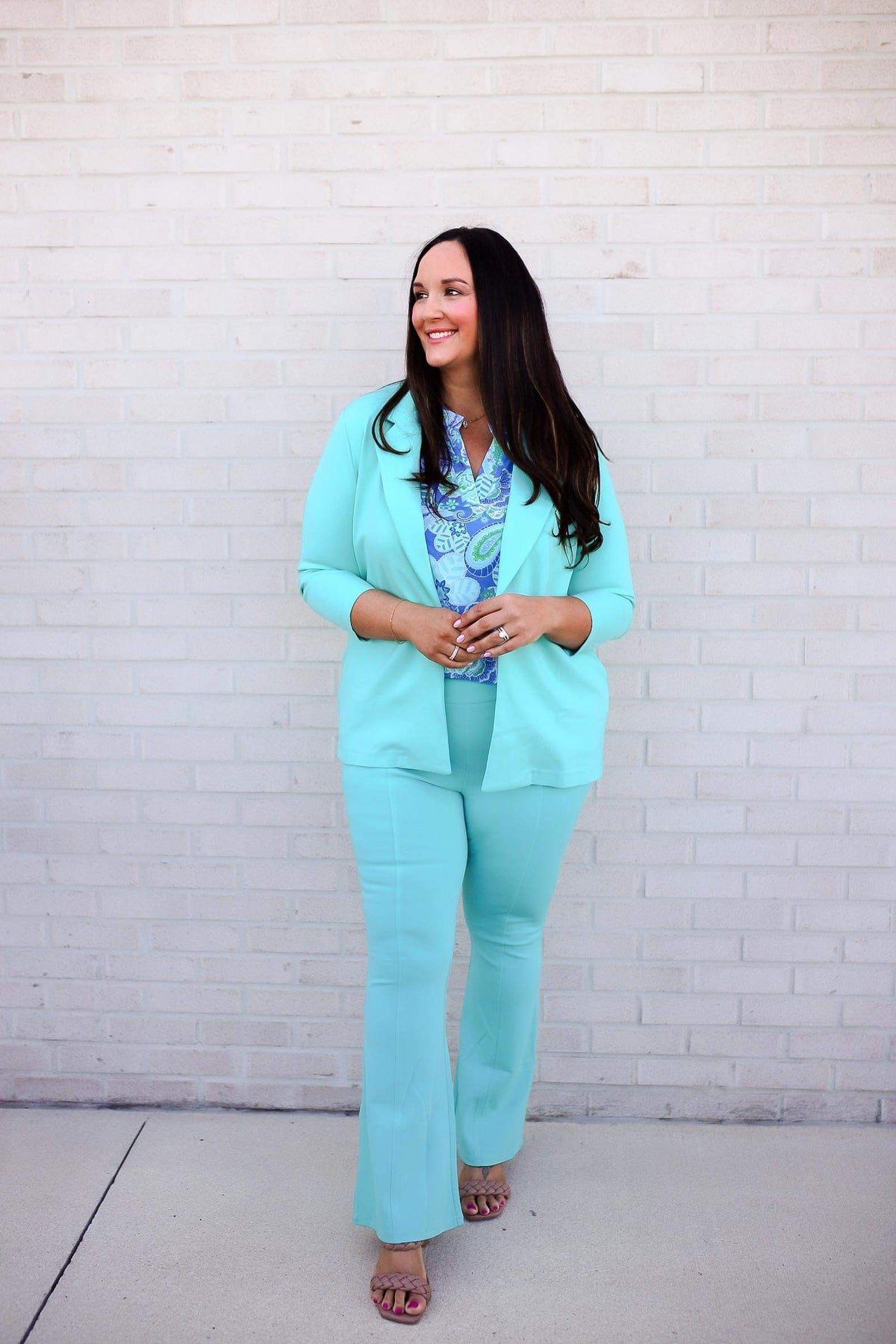 Achieve effortless style and comfort with our Cory Flare Pants! These high rise pants feature a flare hem and ponte knit for a flattering silhouette with a convenient pull-on design. The model is in the small, the model is in the 1X.