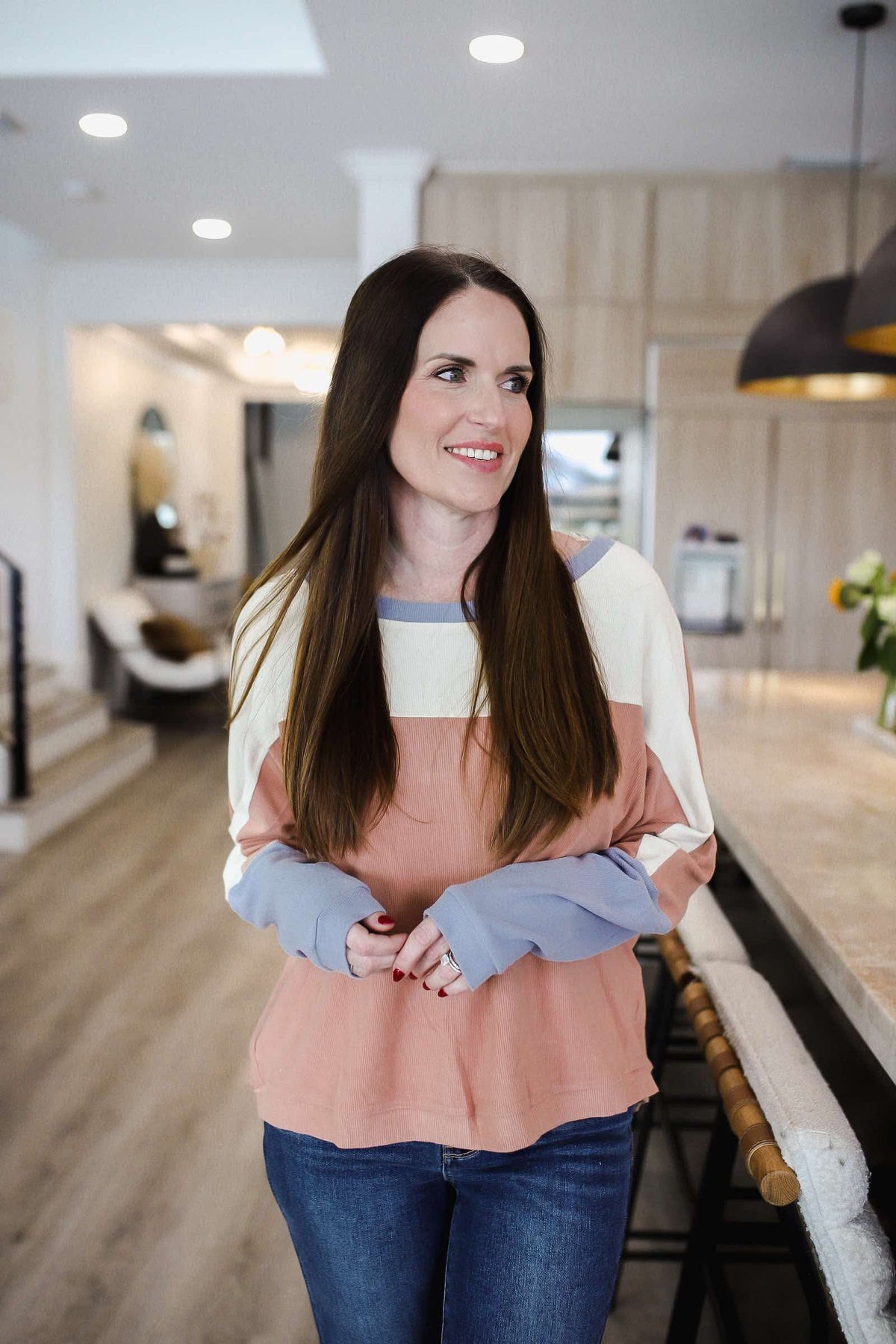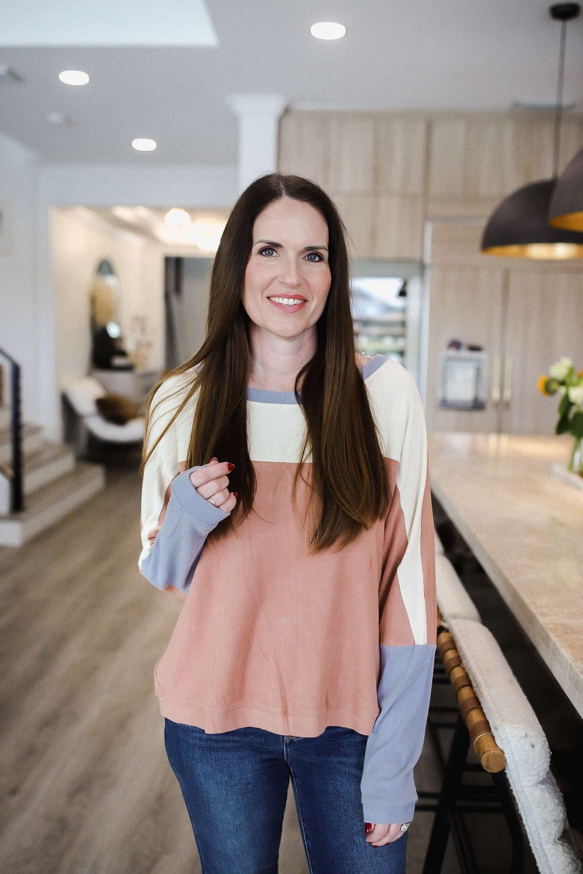 Unleash your cozy coolness with our My Sweeter Side Fleeced Color Block Top. The fleeced, ribbed texture will keep you toasty, while the dolman sleeves and round neck add a touch of relaxed elegance. With a playful color block design, this top is the perfect blend of comfort and style.