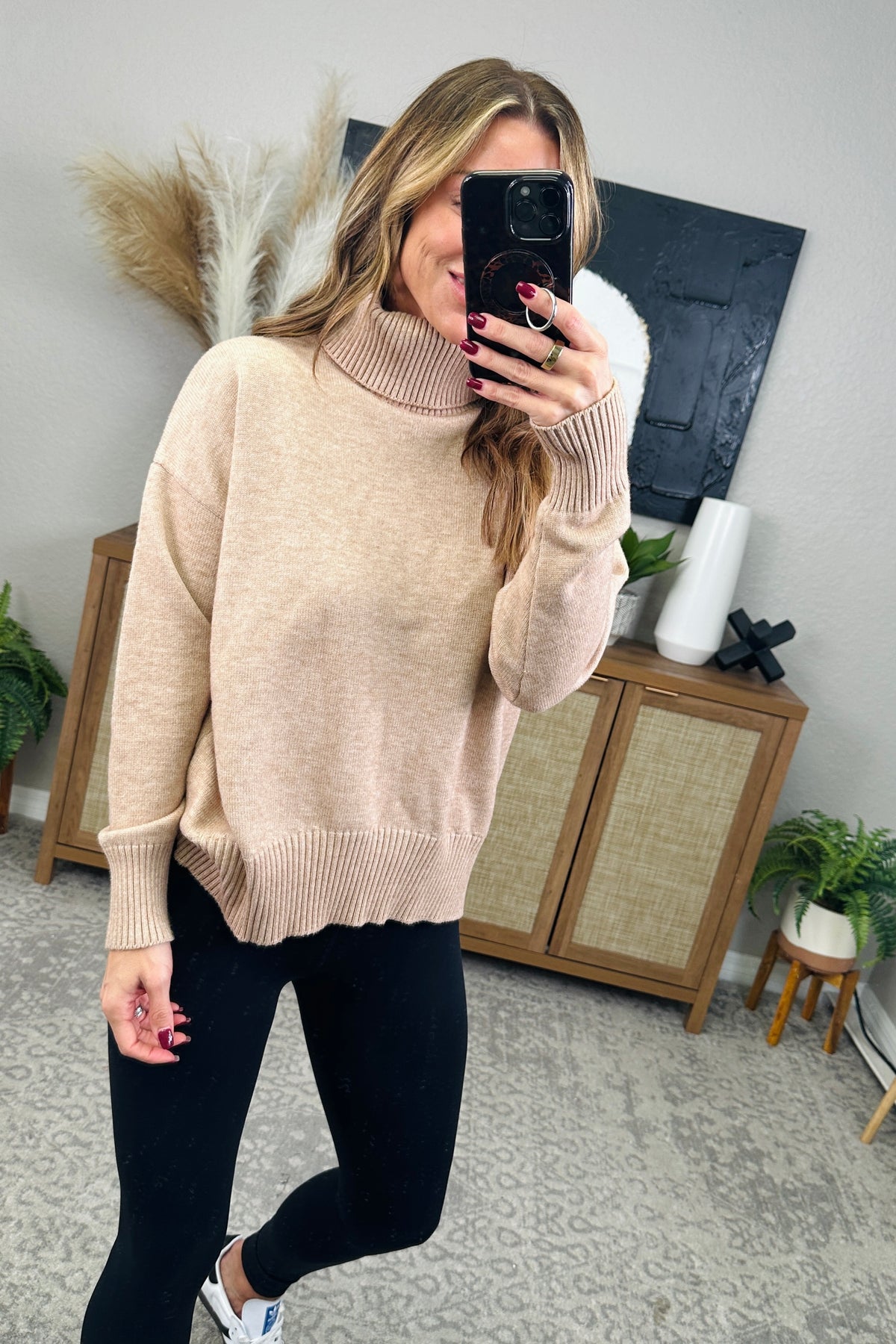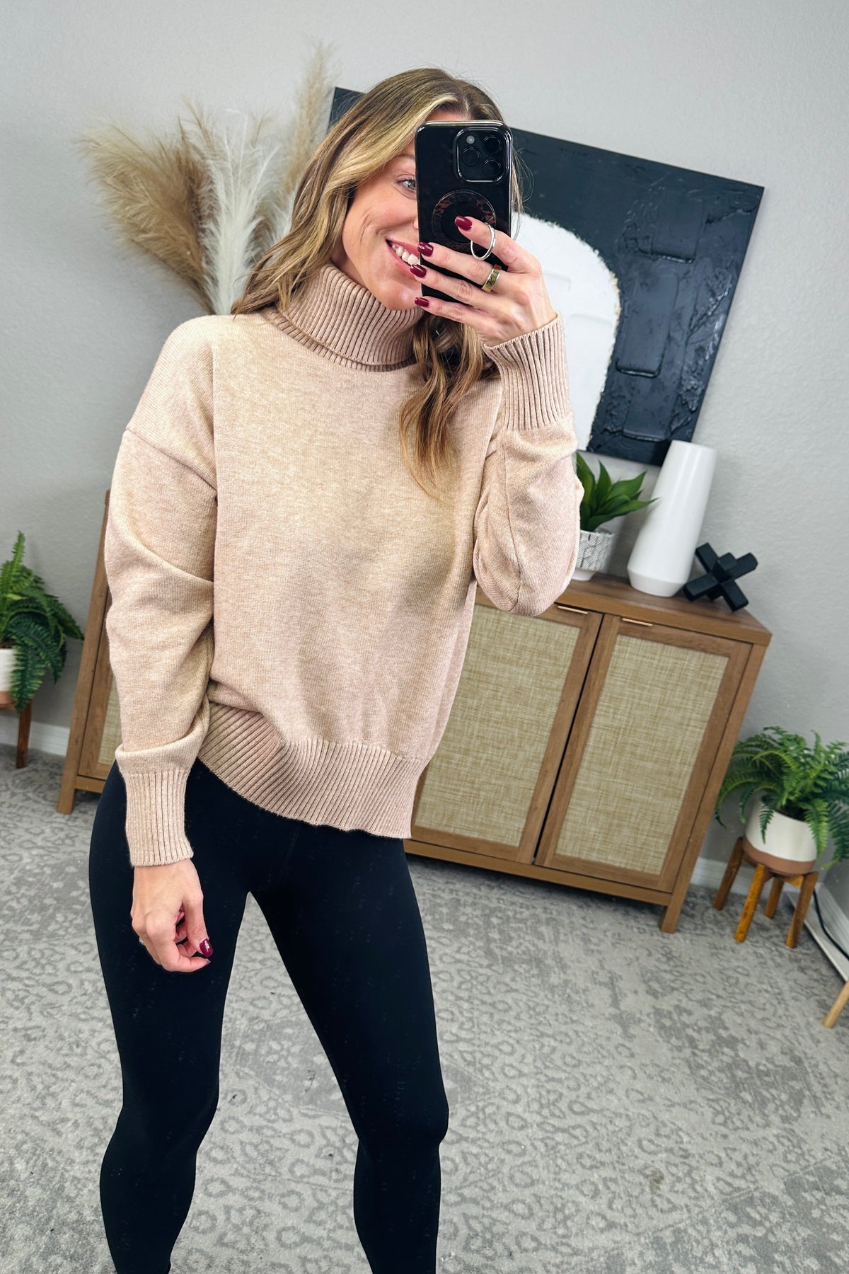 Say goodbye to boring basics with our Basic Bae Turtleneck Sweater! This dropped shoulder long sleeve sweater features a cozy turtleneck, perfect for staying warm and chic all season long. Trust us, you'll be reaching for this quirky and fun sweater again and again.