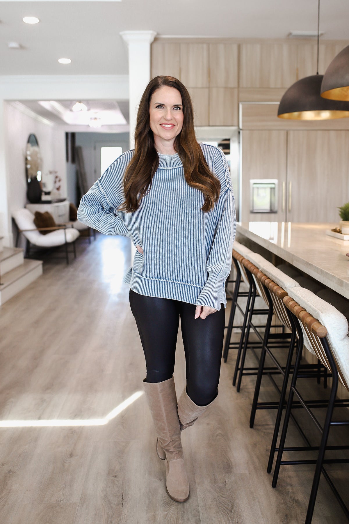This oversized ribbed knit pullover features a relaxed fit design perfect for casual comfort and effortless style. Crafted from soft knit material in an elegant dusty blue shade, this sweater top showcases a classic ribbed texture throughout. The high-low hemline adds a modern touch while the crew neckline and long sleeves provide comfortable coverage. The loose silhouette makes it ideal for layering and creates a fashion oversized look. Perfect for everyday wear, this pullover combines comfort with contemporary fashion appeal.