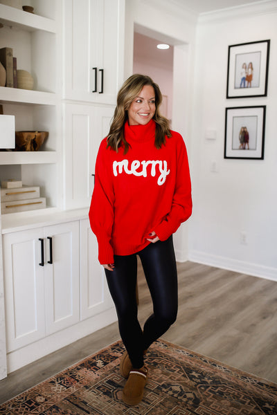 Double Take Full Size Merry Christmas Turtleneck Long Sleeve Sweater