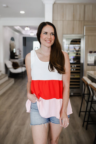 Lime 'N' Chili Color Block Sleeveless Tie Shoulder Babydoll Top