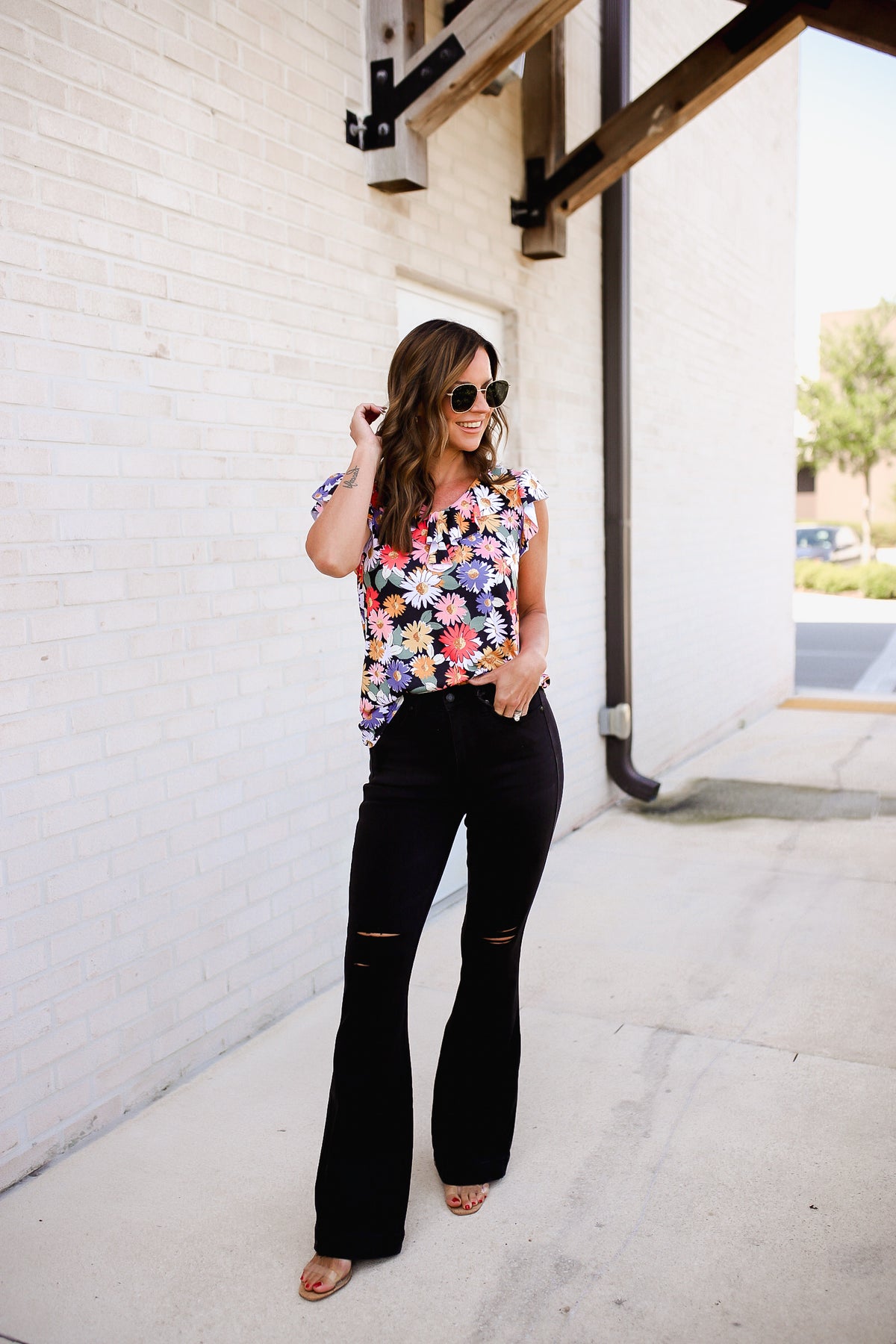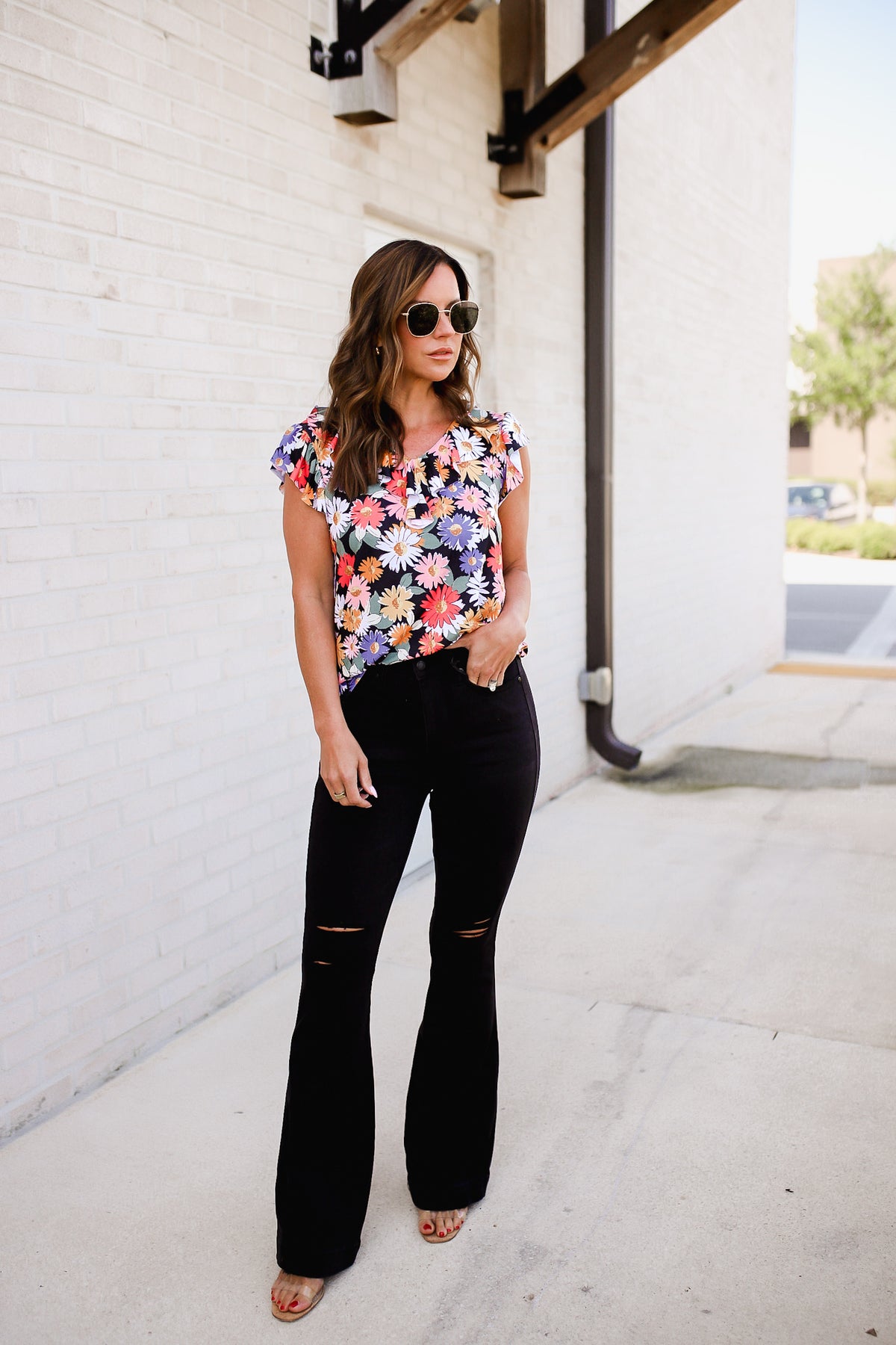 Stay stylish in this Flower Power Floral Top! Crafted from jersey knit, the v-neckline and ruffle sleeves create a unique silhouette while the fun floral print will have heads turning. Dare to make a statement? Look no further than this top!