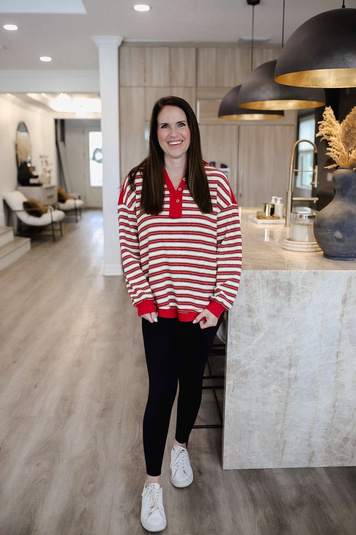 Stripe Johnny Collar Drop Shoulder Sweatshirt